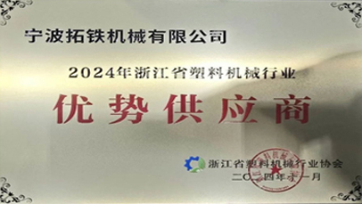 • 喜報(bào)!拓鐵再獲浙江省塑機(jī)協(xié)會“優(yōu)勢供應(yīng)商”榮譽(yù) 浙江省塑料機(jī)械行業(yè)協(xié)會于2024年11月在深圳召開一屆二次會員代表大會暨二次理事會議,屆時公布了“優(yōu)勢供應(yīng)商”評選結(jié)果,并對獲獎單位頒發(fā)榮譽(yù)獎牌和證書。